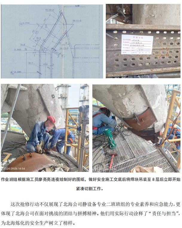 臺(tái)風(fēng)前夕!北海公司對 1#催化再生循環(huán)斜管貼焊搶險(xiǎn)