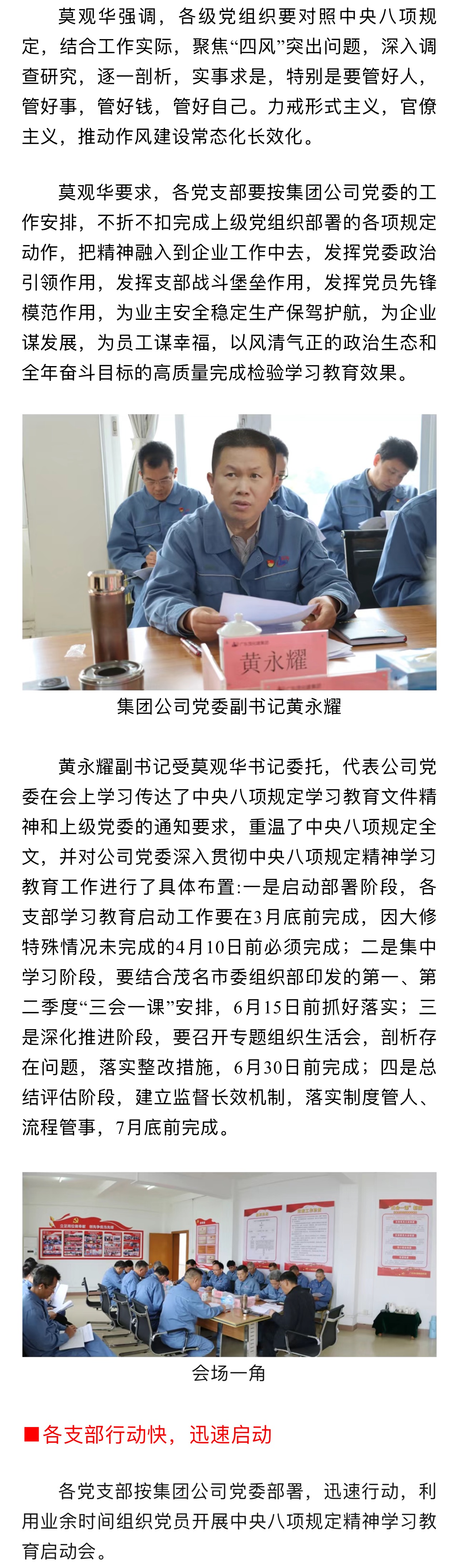 廣東茂化建集團(tuán)黨委召開貫徹中央八項(xiàng)規(guī)定精神學(xué)習(xí)教育部署啟動(dòng)會(huì)