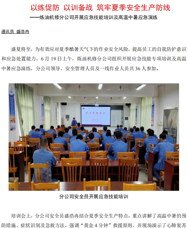 煉油機(jī)修分公司開(kāi)展應(yīng)急技能培訓(xùn)及高溫中暑應(yīng)急演練